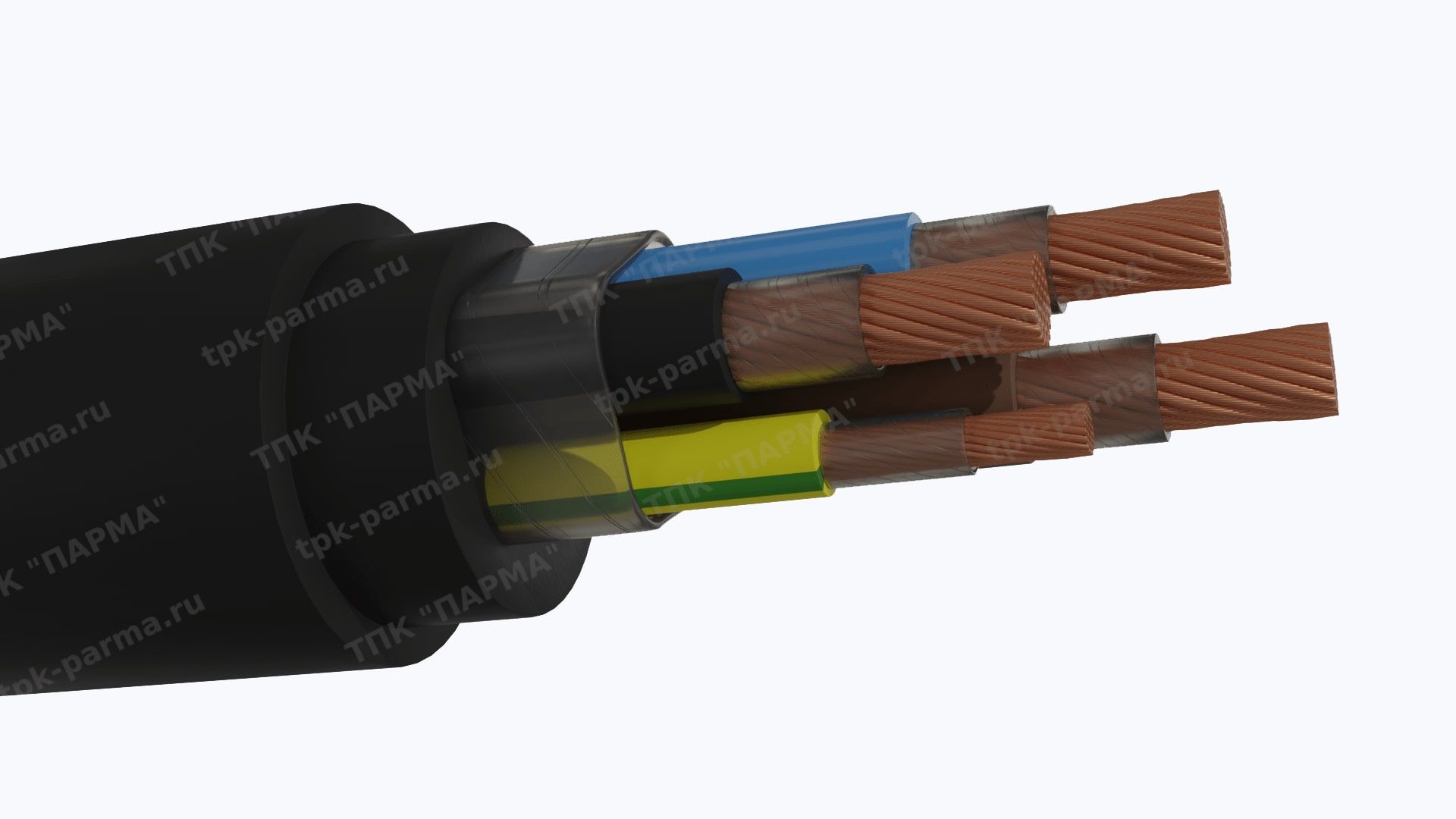 1. Пять токопроводящих многопроволочных медных жил с площадью номинального поперечного сечения 25 мм2, соответствующих 5 классу по ГОСТ 22483-2012.