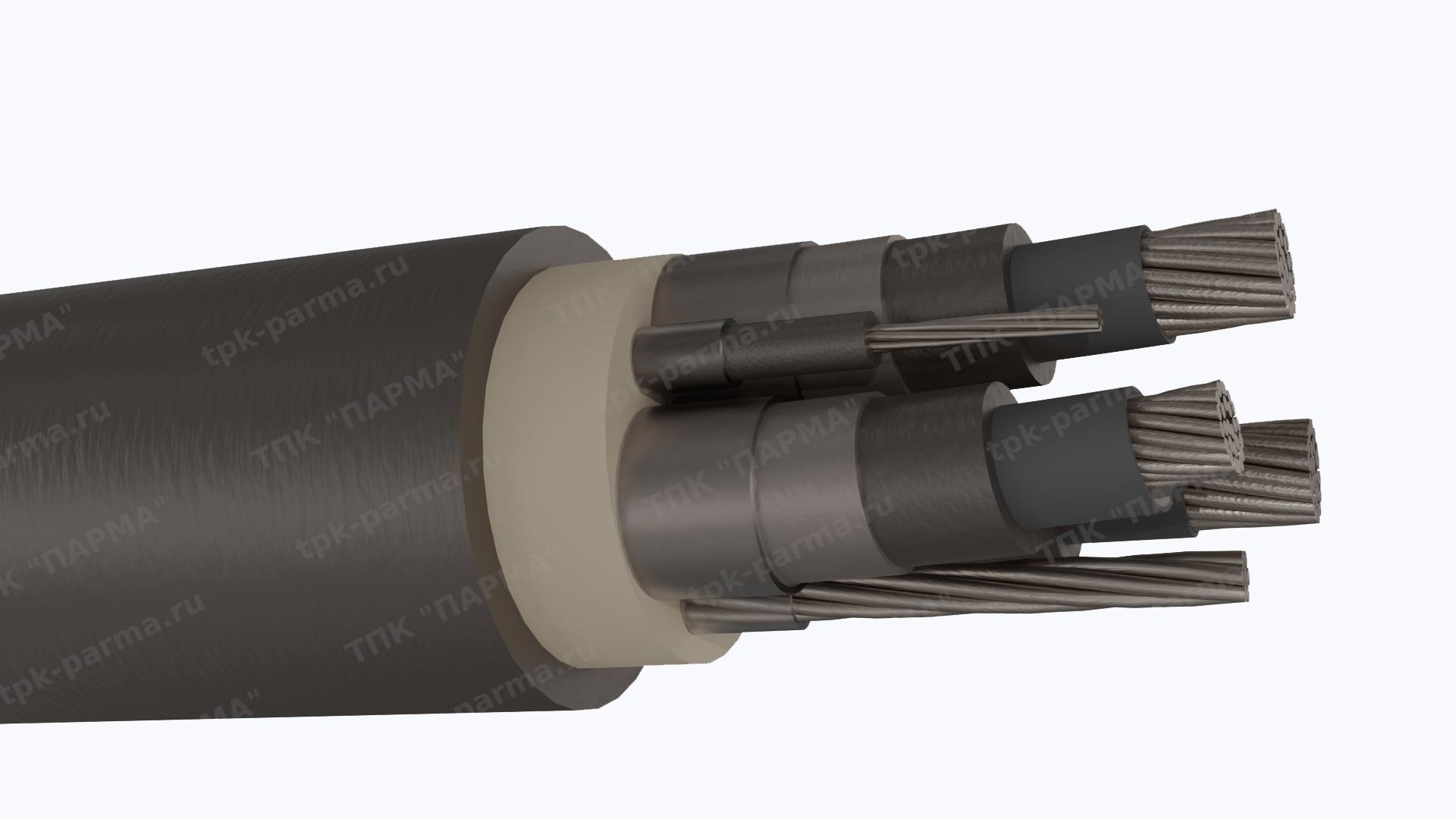 1. Три многопроволочные медные лужёные круглые основные жилы с площадью номинального поперечного сечения 25 мм2, соответствующие 5 классу по ГОСТ 22483-2012.